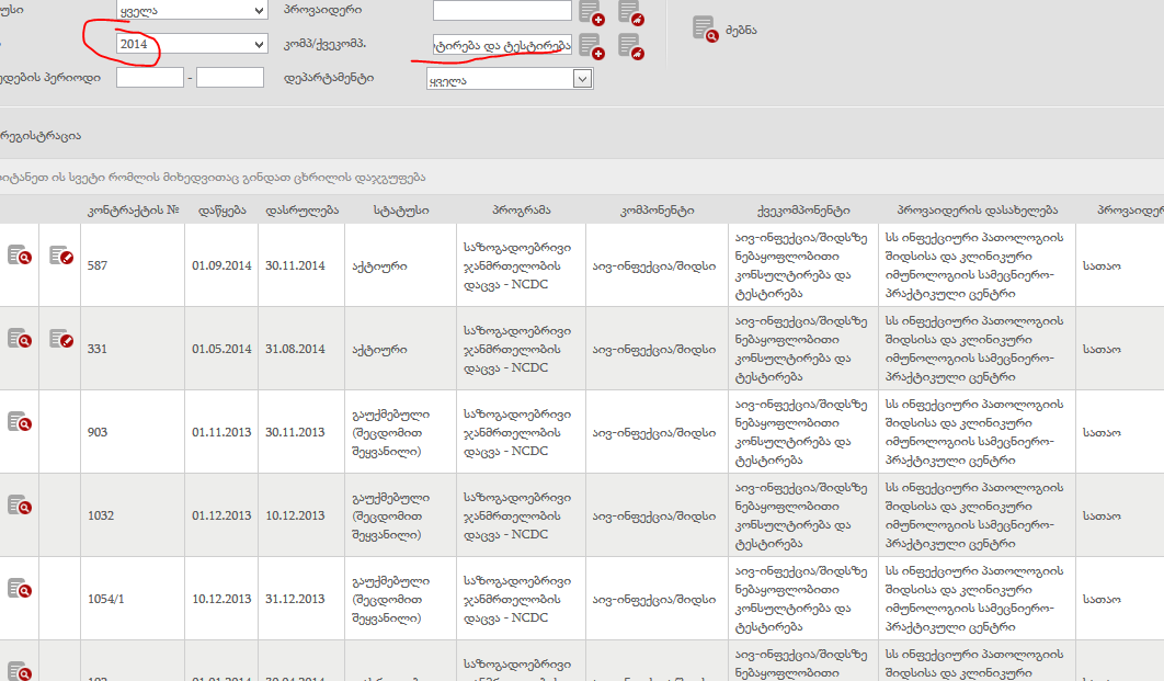 ფორმები თავისი ვალიდაციებით მზად არის, მაგრამ გადავაწყდი პრობლმას, რომ ვნახე „აივ-ინფექცია/შიდსზე ნებაყოფლობითი კონსულტირება და ტესტირება“ -კომონენტი. 2015 წელს არცერთი ხელშეკრულება არ არის დამატებული.