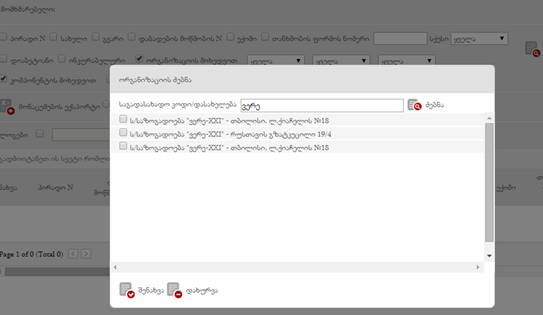 7. ადმინისტრატორის ინტერფეისში „სჯც რეესტრი“-ს ფილტრს დაემატოს რეგიონი და რაიონი; - ოკ