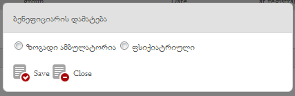2. ფსიქიატრიულში ბენეფიციარის დამატებაში ქართულად გამოდის ეს გვერდი