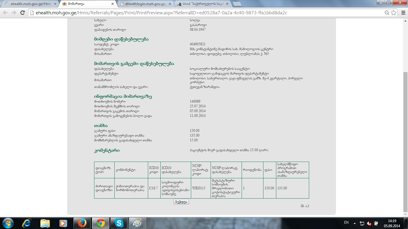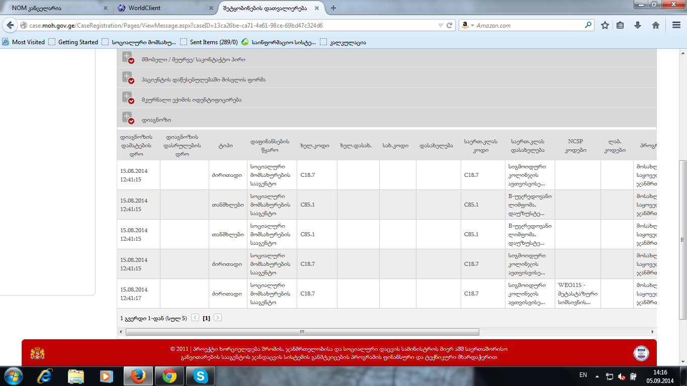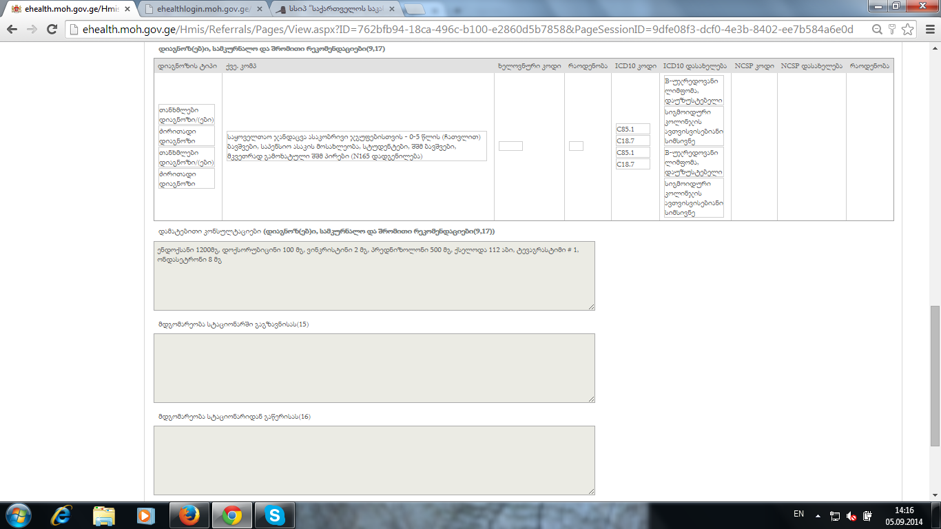 მოკლედ სატესტოდ შევქმენით ერთი მიმართვა ( N156550) და ფორმა 100- ზე არსებული დიაგნოზი ჩარევის გარეშე რომელიც უკვე კალკულაციის გვერდზე აღარ არის, შეტყობინების მოდულში სინქრონიზაციის დროს მაინც მოაქვს. იხილეთ ბმული.