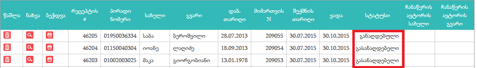 3.      მიმართვის ფერი კომისისაში-თუ მიმართვის გადაწყვეტილებაში ერთი მაინც 0 და დანარჩენი ცარიელი - წითელი ფერისაა, თუ ერთი მაინც გადაწყვეტილება აქვს მაშინ მწვანე და  თუ საერთოდ არააქვს თეთრი