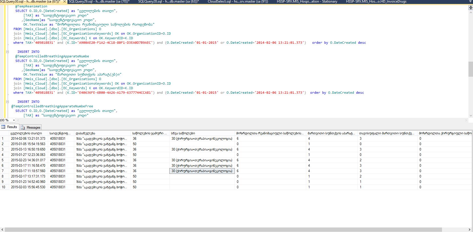 თქვენი თხოვნის შესაბამისად გიგზავნით შპს აკადემიკოს ვახტანგ ბოჭორიშვილის სახელობის სეფსისის და ინფექციურ პათოლოგიათა კლინიკის (ს/კ 405018831) პასპორტიზაციის მონაცემებს, მათ შორის 2015 წლის ინსტორიულ ჩანაწერებს თარიღების მიხედვით. იხილეთ თანდართული ფაილი. დამატებითი კითხვების შემთხვევაში მოგვმართეთ.