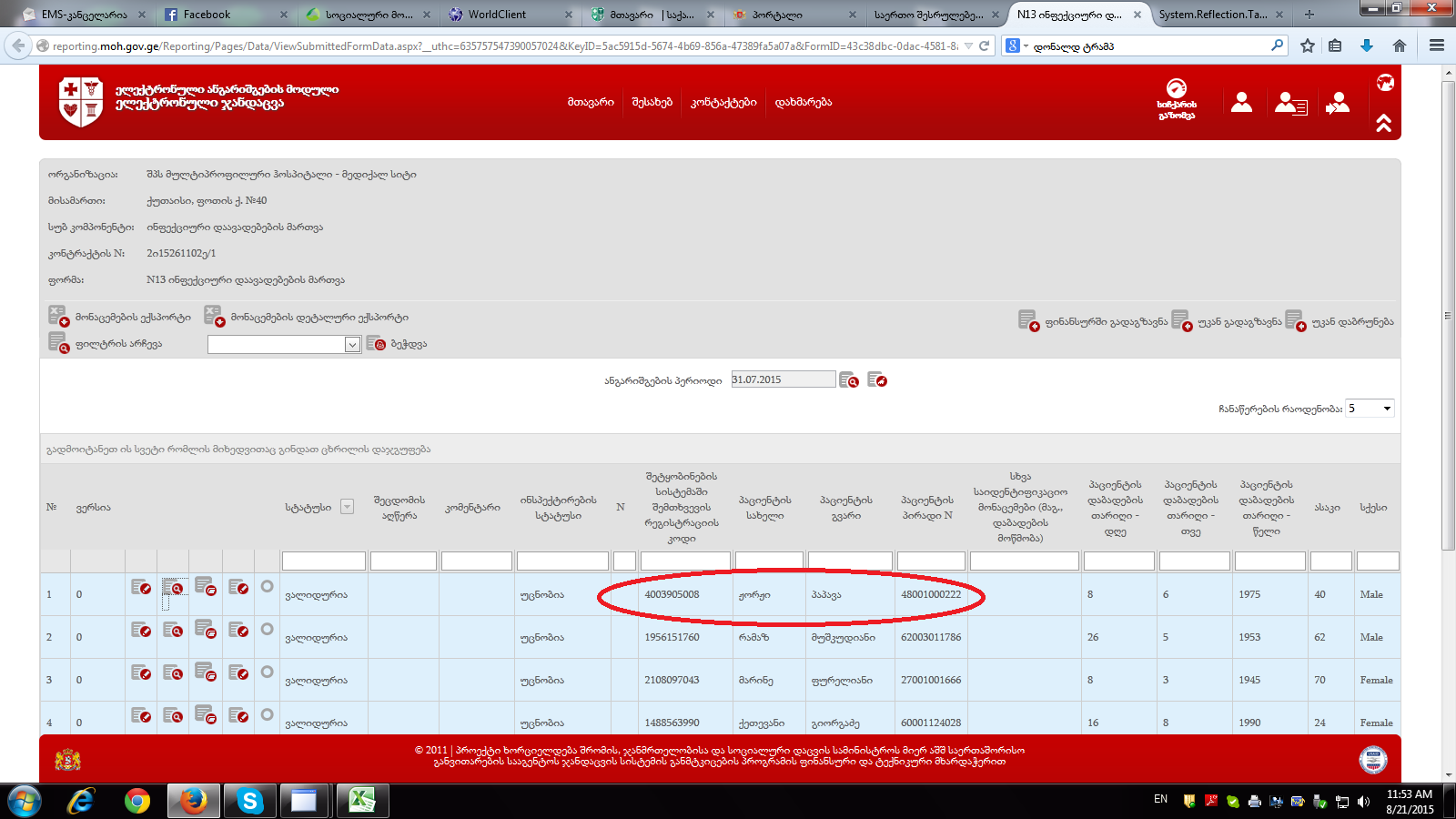 მოწოდებული შემთხვევების ჩამონათვალი, უკვე ცალკეული შემთხვევის " ნახვის"