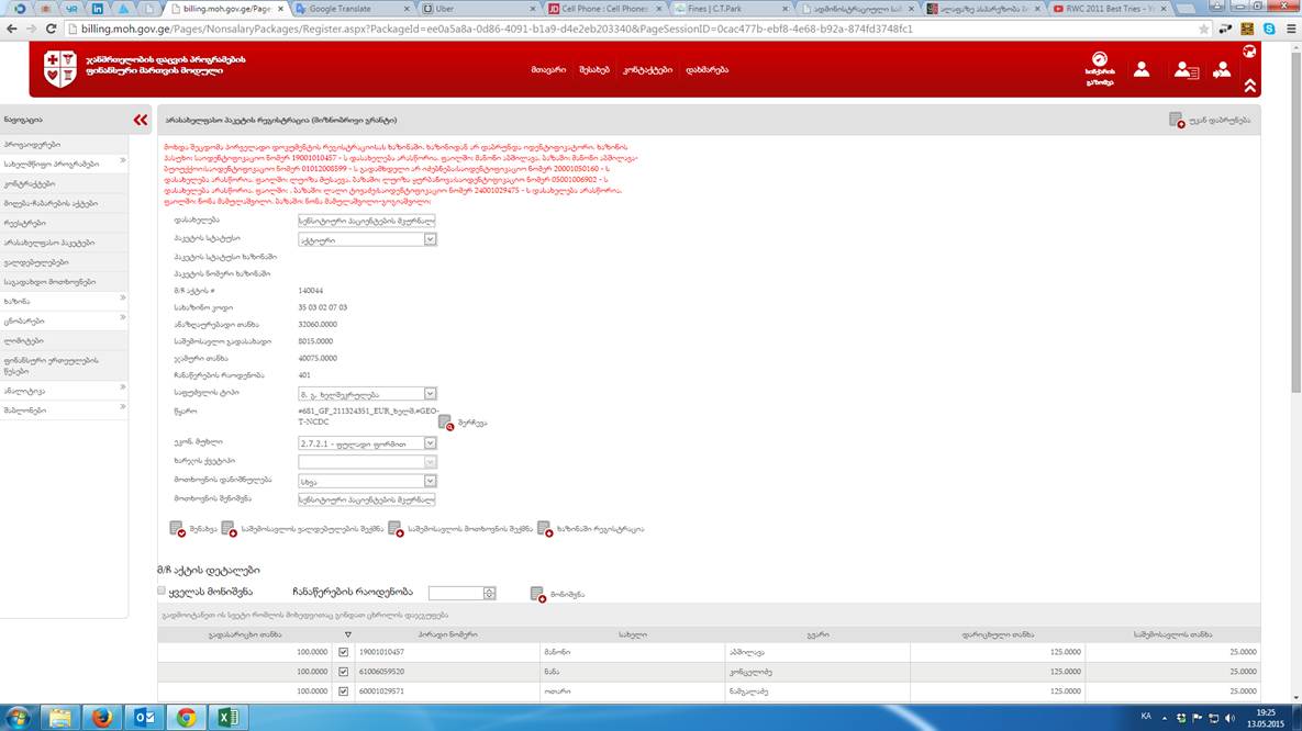 6. პაკეტის დაწუნება თუ ხდება რაიმე მიზეზით ხაზინის მიერ, შესაძლებელი იყოს ფინანსური მოდულიდან პაკეტის გასწორებული ვერსიის ხელახლა რეგისტრაცია ხაზინაში პროგრამისტის ჩარევის გარეშე კარგია !