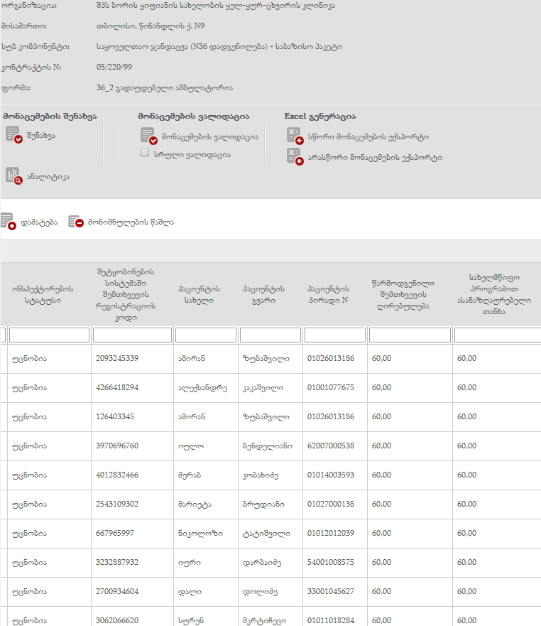 ბაიკო, როგორც შევთანხმდით, გიგზავნით ყიფიანის სახელობის ყელ–ყურ–ცხვირის კლინიკის ს/კოდს 206047712, პაროლს lor999 და გვარებს დადგენილების მიხედვით.