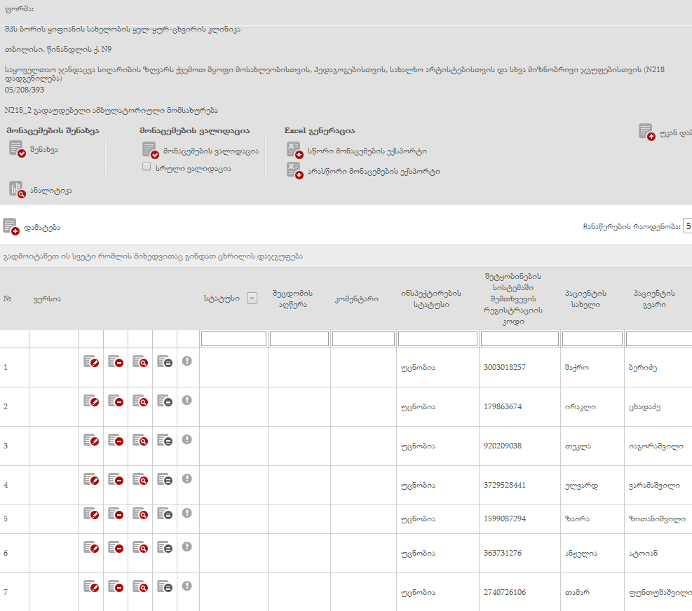 კლინიკას სამუშაო ინტერფეისიდან დეკარგა ქვემოთმითითებული შემთხვევები.