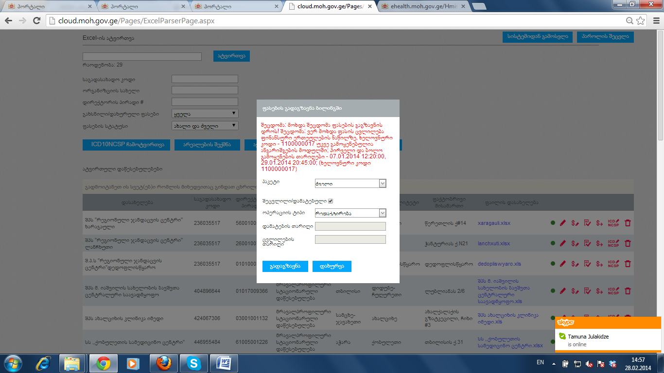 ახალი ვერსია გადატანილია რეალურ რეჟიმში მომუშავე სერვერზე. ექსელის ფაილსაც ფასთასხვაობებით მალე მოგაწვდით