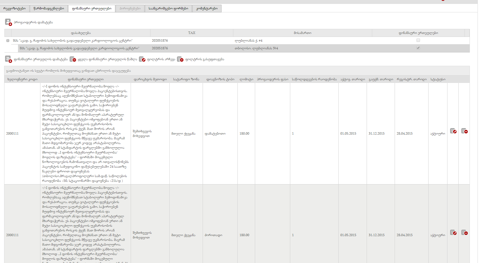 ჩაფიძის კლინიკას (202051876) მინიმალურ პაკეტზე ხელოვნურ კოდებზე 2000001 - 217 ლარი, 2000111 – 180 ლარი არ აქვს გადაგზავნილი თანხა. კონტრაქტებში ორჯერ ჩანს აღნიშნული კოდები ერთი განფასებული მეორე ნულიანით. უნდა ჩასწორდეს ნულიანი თანხა.