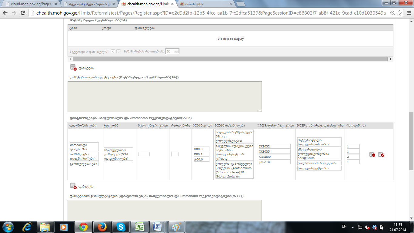 შევდივარ თავიდან ამავე მიმართვაში და ფორმა 100-ზე მხვდება 3 icd10 კოდი, რომელიც რეალურად 1 დავამატე.(შესაბამისი ბმული)