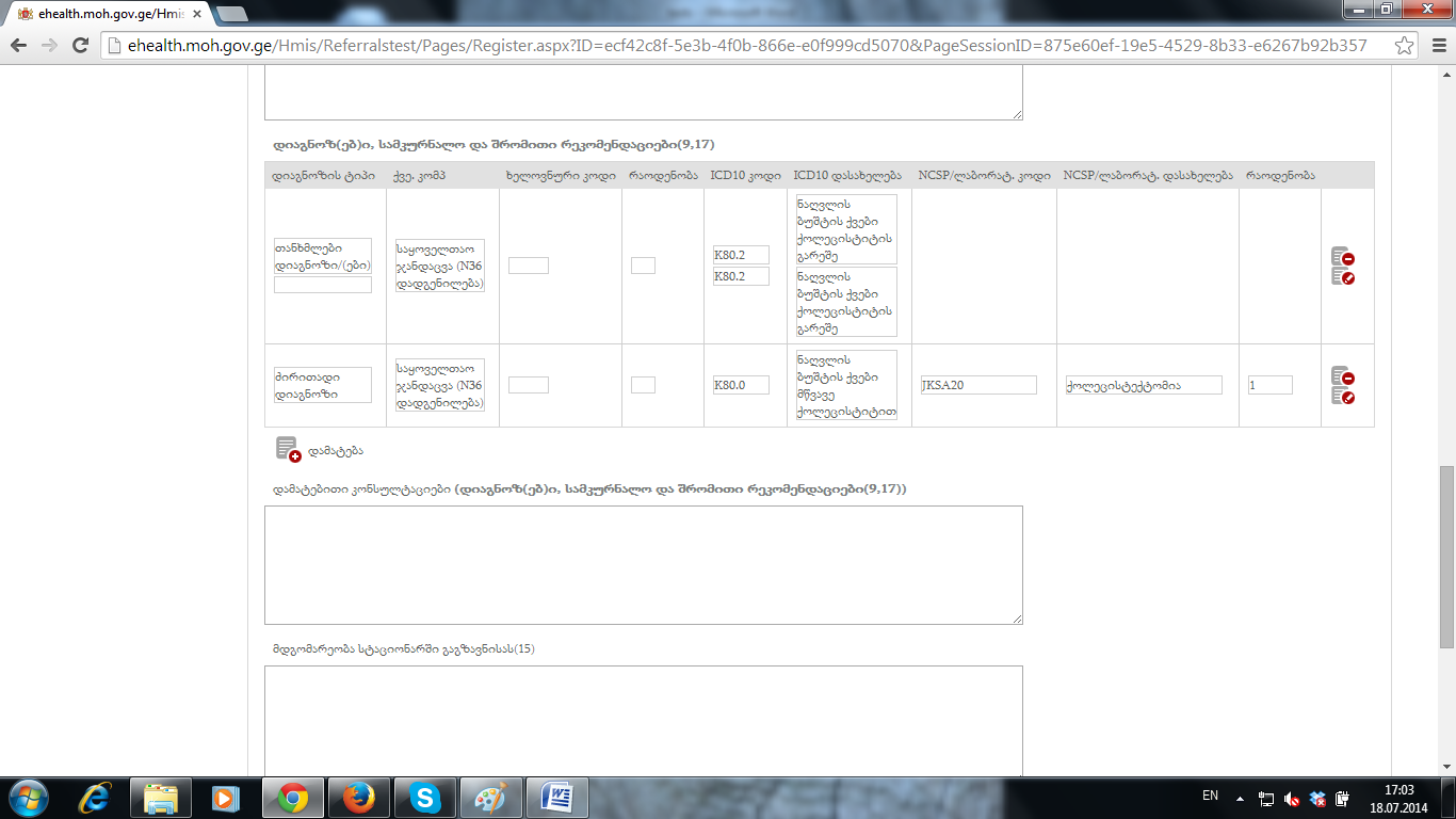 შევდივარ თავიდან ამავე მიმართვაში და ფორმა 100-ზე მხვდება 3 icd10 კოდი, რომელიც რეალურად 1 დავამატე.(შესაბამისი ბმული)