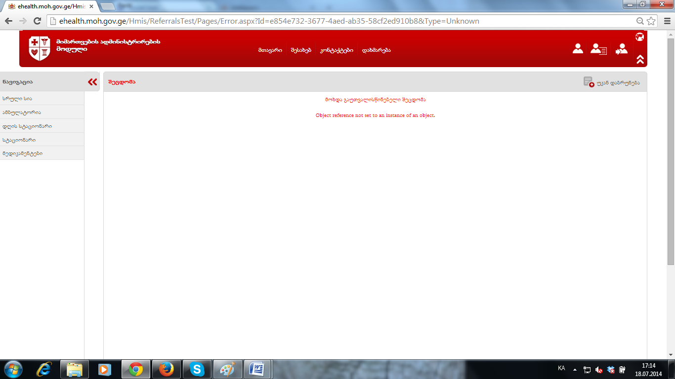 მე სატესტოზე ვიყავი და ფორმა 100- ის შენახვის დროს იგივე ერორია მგონი...