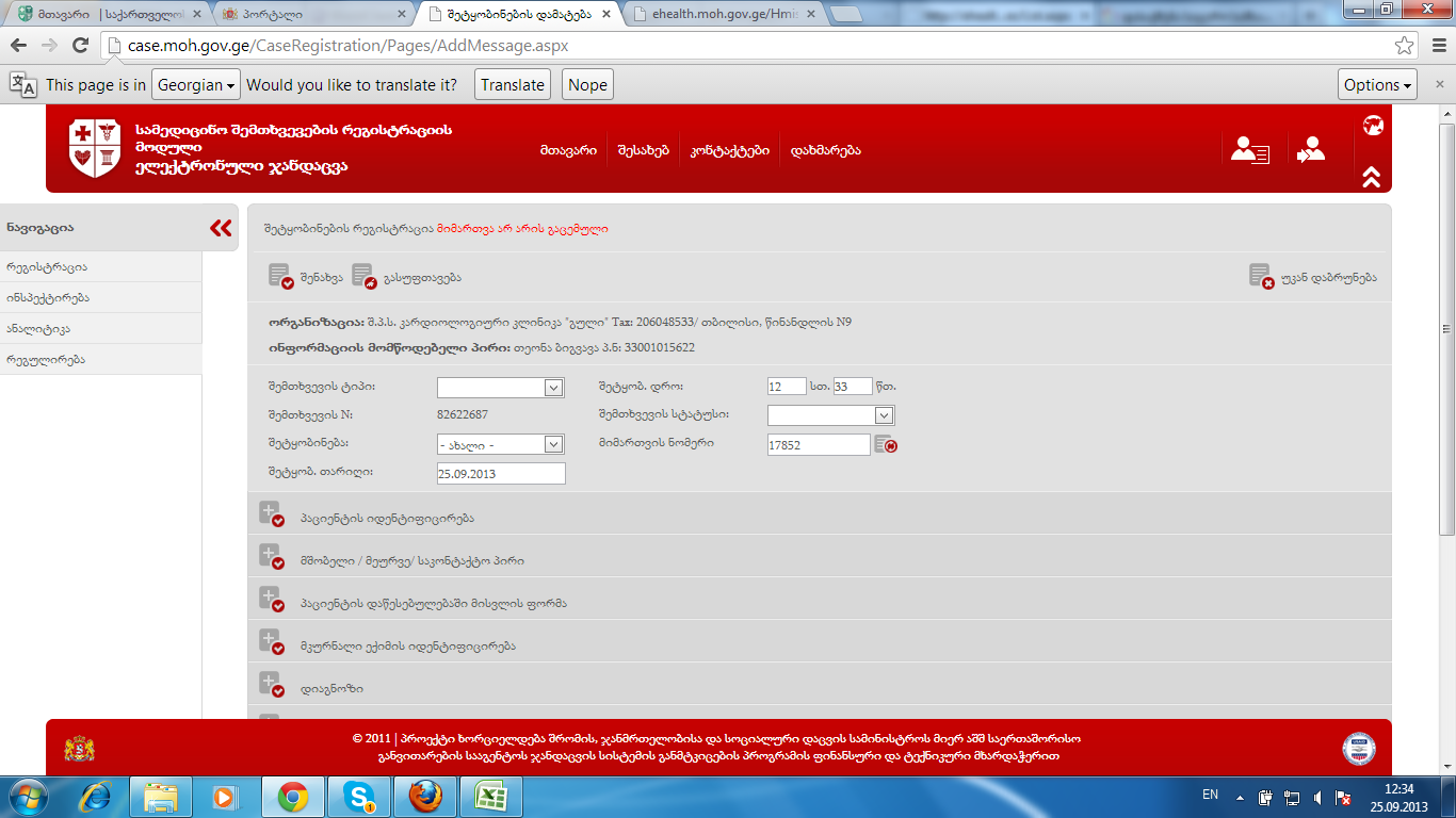 მოგესალმებით,გვიკავშირდება ქორიძის კლინიკა.მიმართვა გაცემულია, შეტყობინებას ვერ ხურავს კლინიკა და უწერს რომ მიმართვა არ არის გაცემულიო...სავარაუდოდ რაც მე ვნახე, ეს იმის ბრალია რომ მიმართვაზე არ არის მითითებული გამოყენების ბოლო ვადა ( წესით ამის საშუალებას არ უნდა აძლევდეს პროგრამა, გამოყენების ბოლო ვადის მითითების გარეშე მიმართვის ბეჭდვა არ უნდა ხდებოდეს)