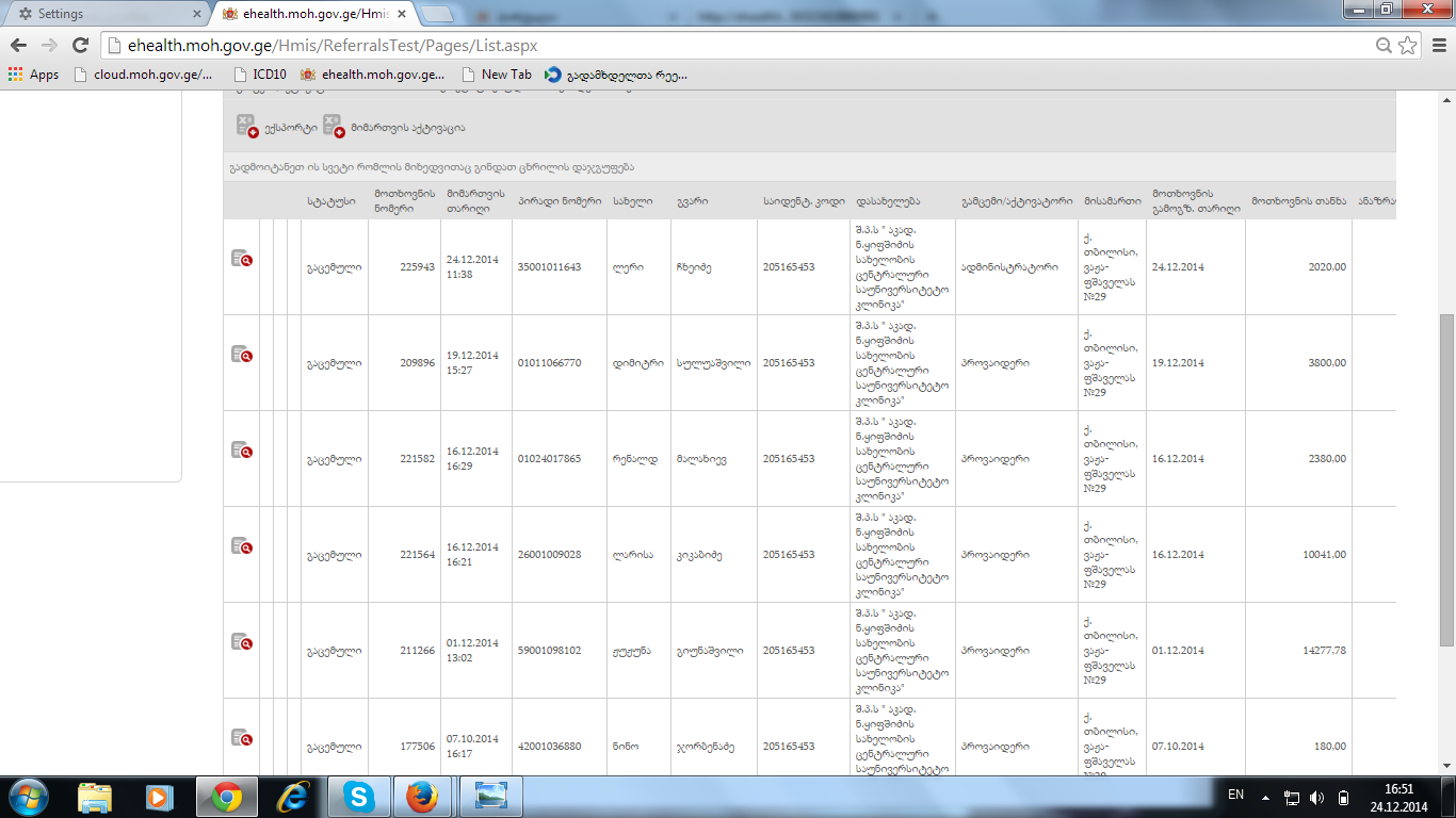 მოთხოვნა გააქტიურა კლინიკამ მაგრამ საერთო სიაში არ იძებნება. აქ ის შემთხვევაც ფიქსირდება როცა რეკვიზიტების გვერდზე და კალკულაციის გვერდზე არსებული კლინიკები ერთმანეთს არ ემთხვევა, რაც უკვე მოვიწერე.