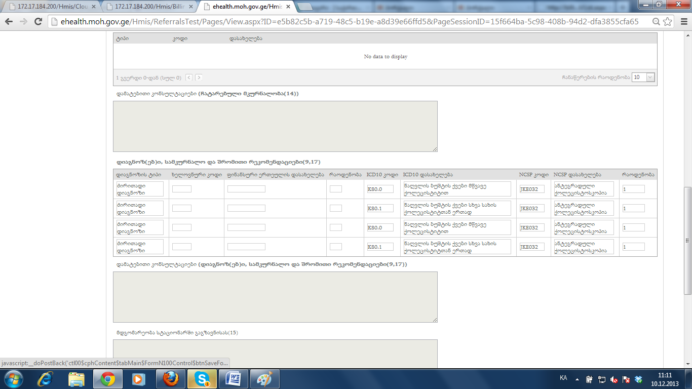5. ფორმა 100-ის გვერდი ცარიელი და კალკულაციის გვერდზე გადააქვს წინა მიმართვის დიაგნოზები. ამას ვეღაღ გაჩვენებ რადგან გასწორდა...