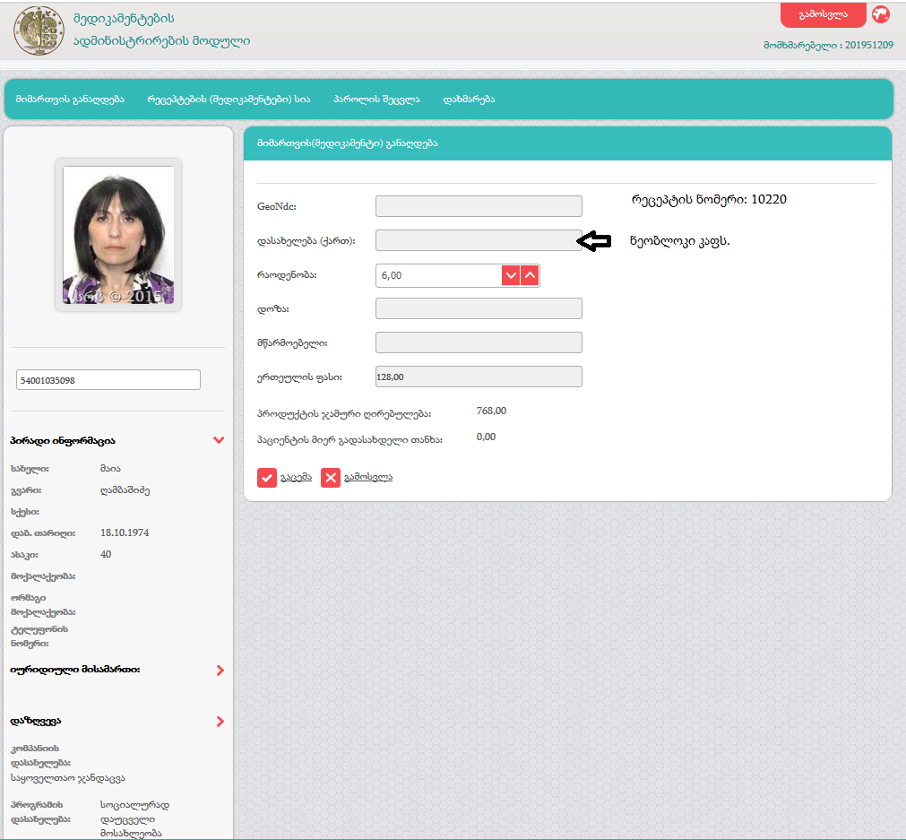 შპს გეა-ს მომხმარებლისთვის (201951209) რეცეპტის მოდულზე წვდომა გახსნილია