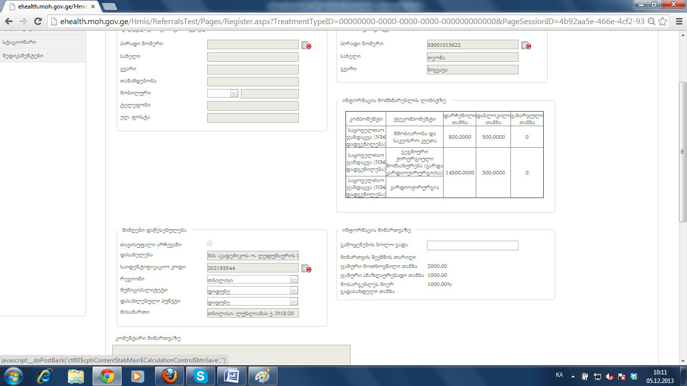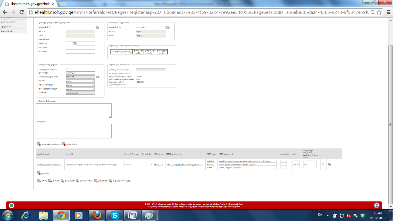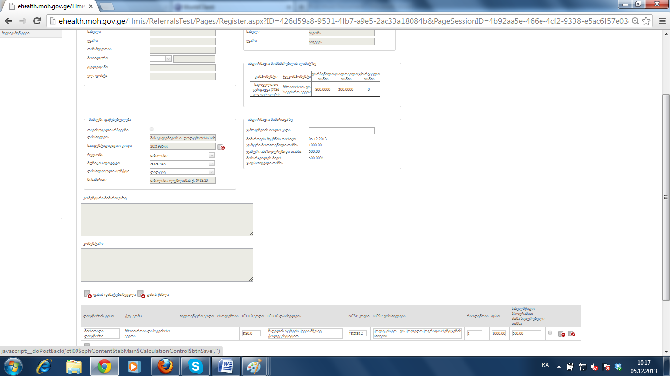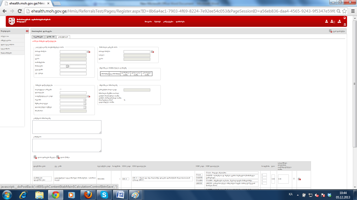6. ეს მიმართვა ეხლა გავეცი შევდივარ და კალკულაციის გევრდზე ხდება-7. ანუ დიაგნოზი რაც წავშალე დამტკიცებულზე ის ისევ გაჩნდა უკვე გაცემულზე და ბოლოს რითაც გავეცი ის დაიგნოზი გაორმაგდა.