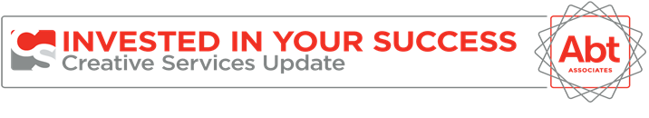 Preparing for “March Madness” March is a busy month. End of the fiscal year spend down, last-minute deliverables, and highly anticipated proposals all contribute to some quick turnaround work. Let’s work together to plan ahead. Take advantage of the self-service resources now available on AGI to tackle “March Madness.” New CS Pages on AGI To educate staff and align our service offerings with the needs of Abt’s Divisions, we have tailored our CS Service Center pages on AGI to answer the following questions: · What does Creative Services do? · How long do things take? · How much will that cost? · Where can I find…well…everything? We welcome you to visit AGI to learn more about our capabilities, our process, and the CS team. Tell us what you think so we can make continuous improvements to helpful resources. Creative Services is working to fulfill its mission to be an innovative, resourceful team, committed to helping the company and clients achieve their missions. | Resources at Your Fingertips Visit the CS Service Center today to learn more about: · Our Core Services in design, formatting, editing, 508 compliance, and proposal support; · Our Reference Series to review Level of Effort (LOE) estimates that explain how long certain tasks take to complete; · Resources—A self-service page for logos, templates, image library, business cards, and so much more; · Marketing Materials—A one-stop shop for corporate marketing materials, Division brochures, information sheets, innovation materials, and business development tools; · Conference and Event information to help promote and build Abt’s Reputational Capital through best practices in planning and executing events big or small; · Answers to Frequently Asked Questions about our team, our process, and resources; and · Abt’s user-friendly Translation Portal—available to all staff who may need translation for various projects or products being shared with our global community! Read more on CS Service Center > Resources > Scroll to bottom “Need Translation?” | |