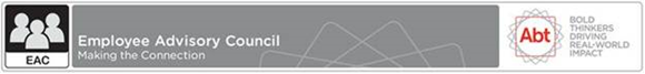 The EAC is an advisory group whose role is to serve as a communications link between Abt Associates staff and senior management to provide advice on issues raised by both management and staff, and to provide employee perspectives on company issues. Through the EAC staff survey, meetings with staff, and communication with the Management Advisory Group (MAG), the EAC facilitates informed decision-making and representation.
