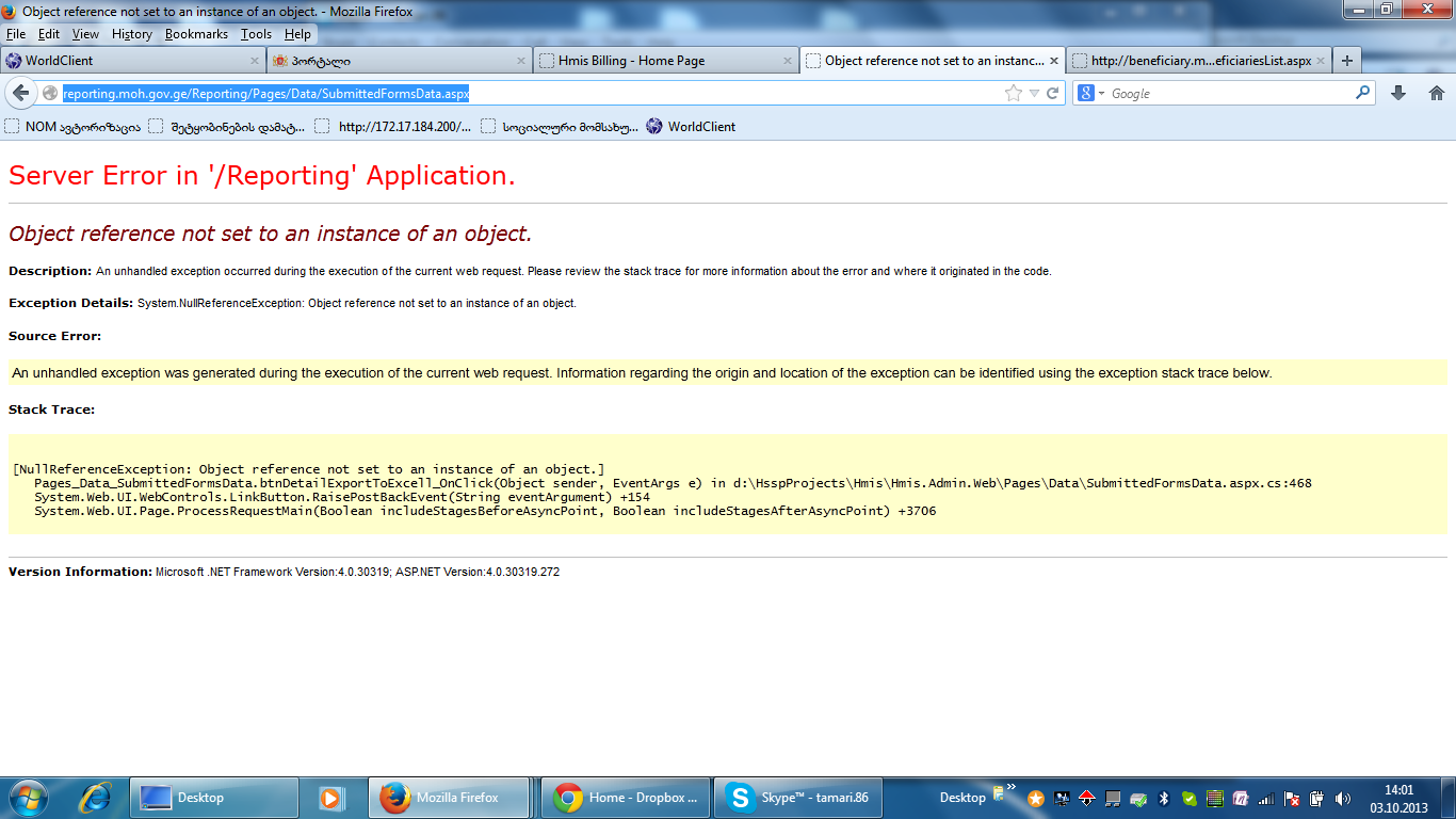 ანალიტიკის მოდულში ეს ერორია როდესაც ფილტრის დადასტურების შემდეგ ვცდილობ მონაცემთა დეტალური ექსპორტის გაკეთებას.