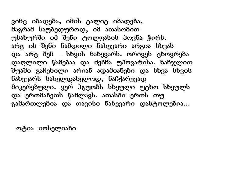 otiaze ar vgijdebi, magram xshirad iset cheshmaritebas ambobs, shen rom ginda tqva da sitkvebs rom ver poulob.