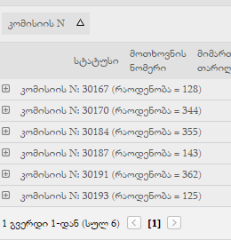 - დაჯგუფებულია ყველა რეგისტრირებული მოთხოვნა კომისიის N-ის მიხედვით