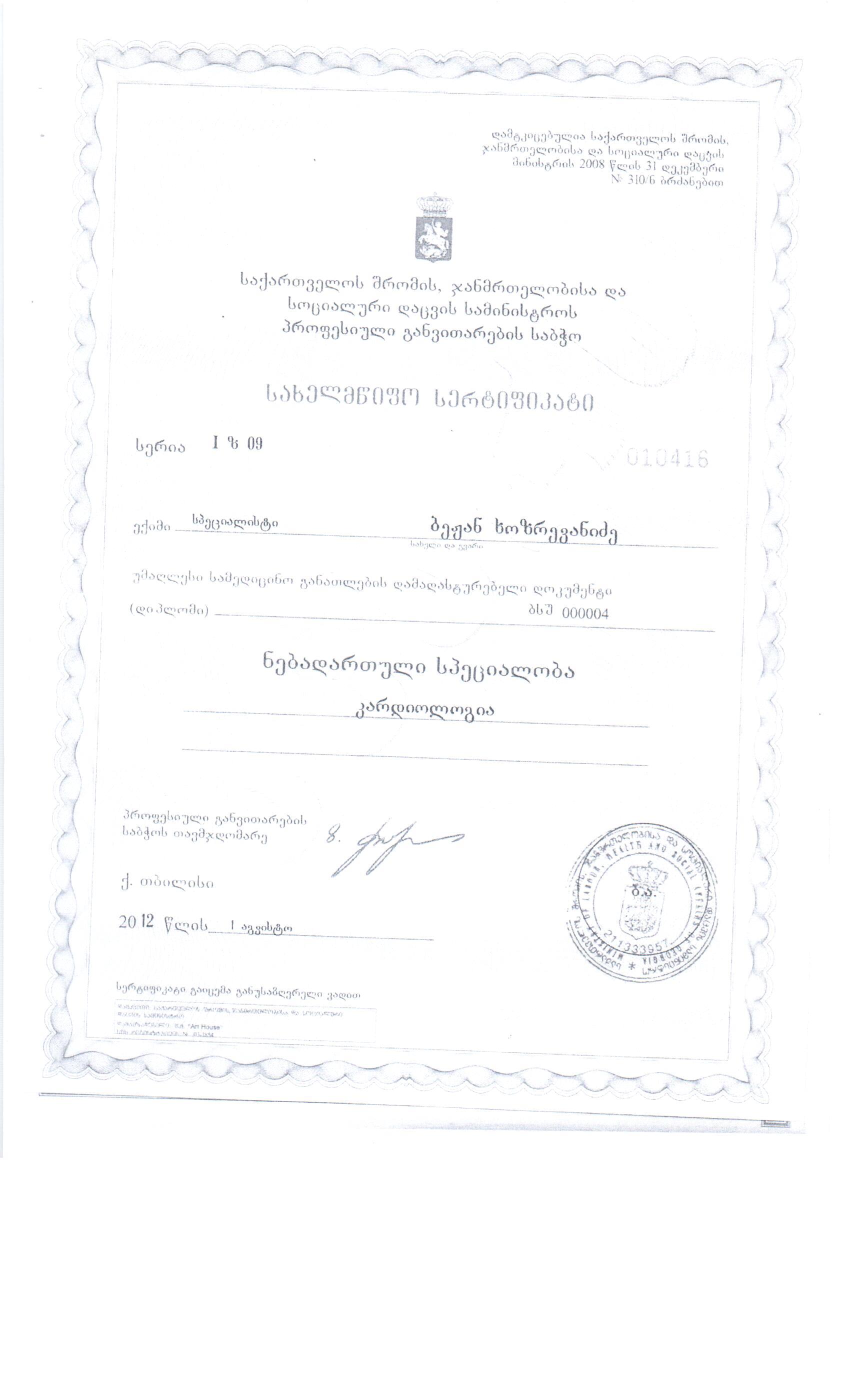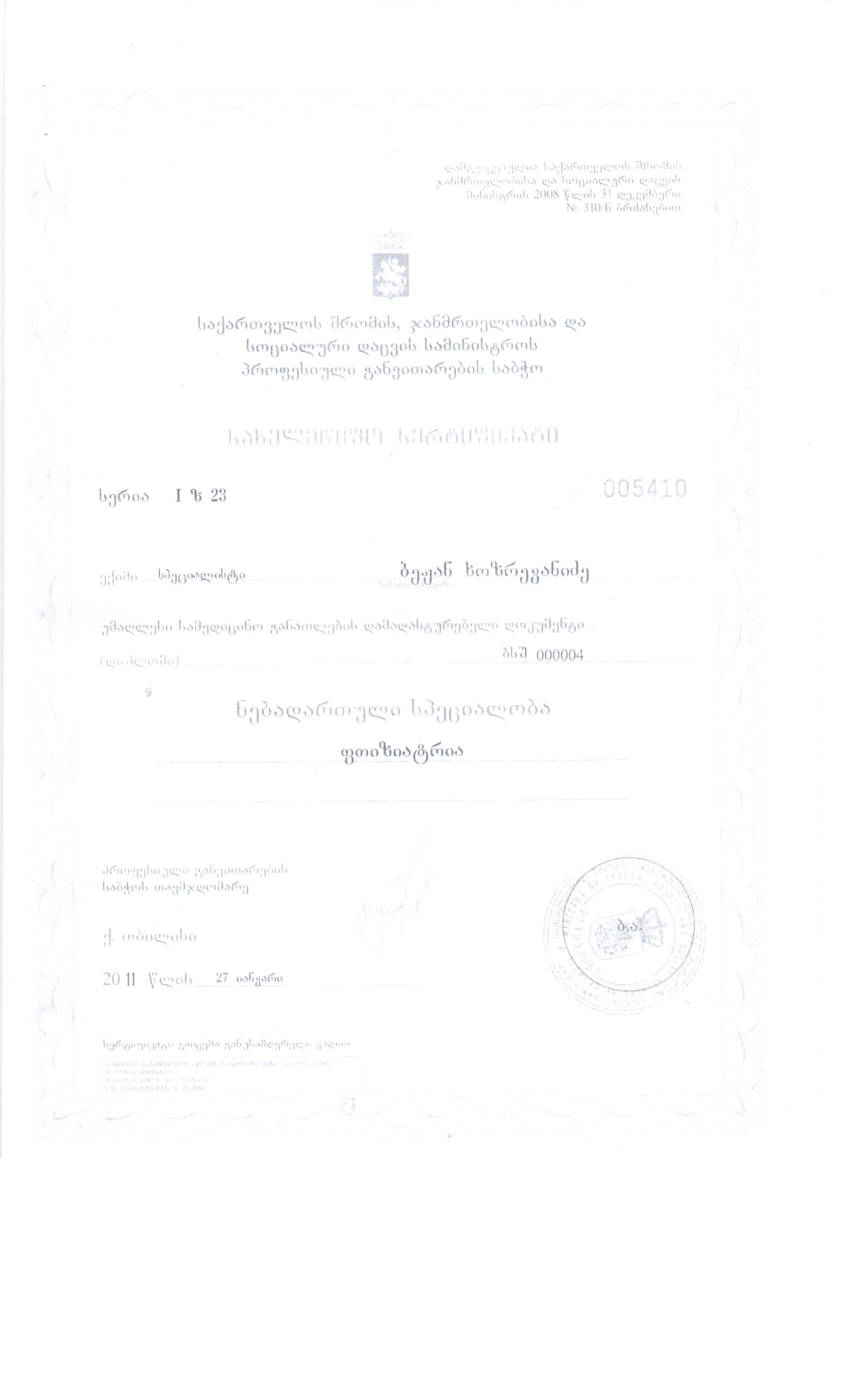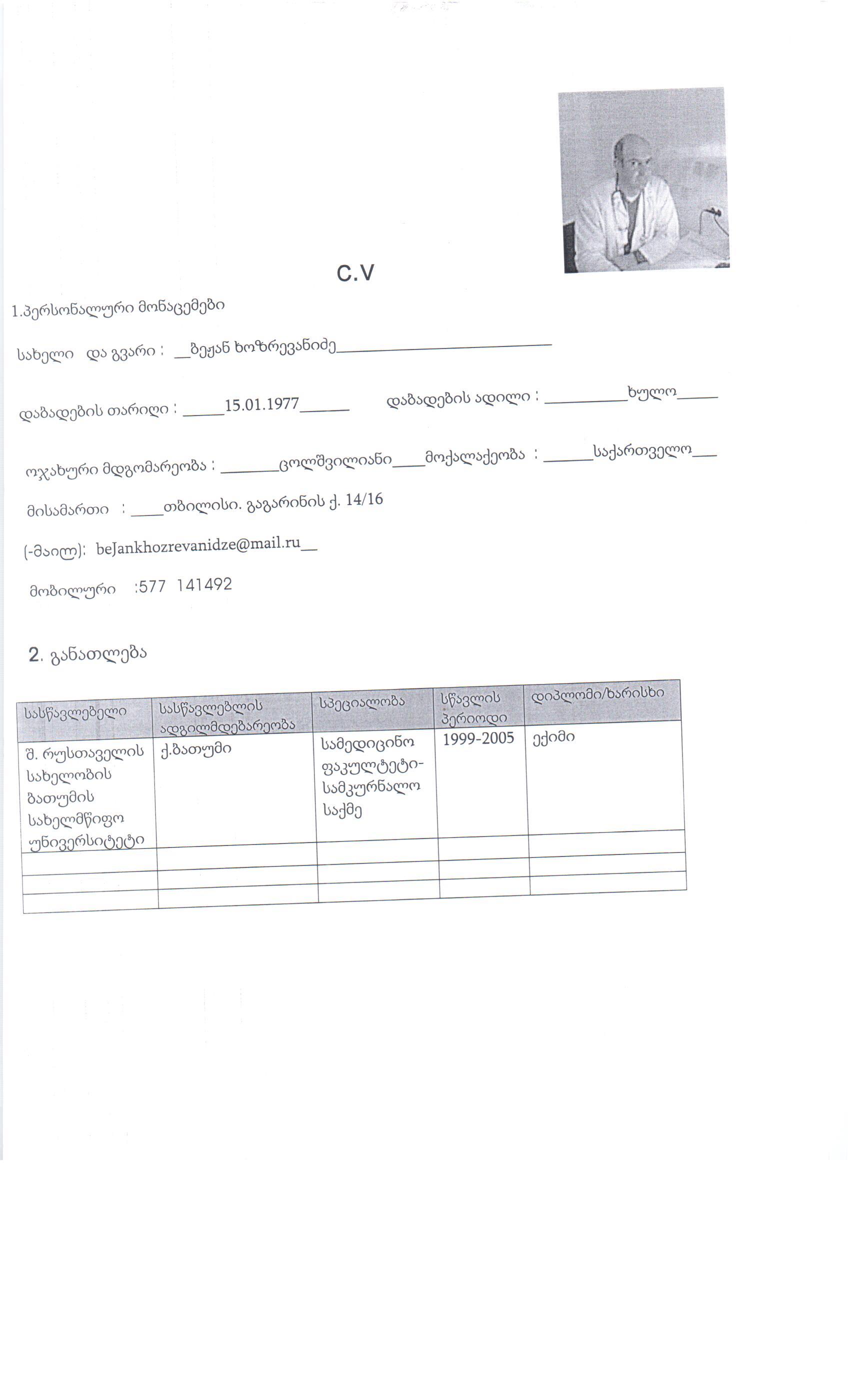 Subject: ბეჟან ხოზრევანიძის პირადი საქმე