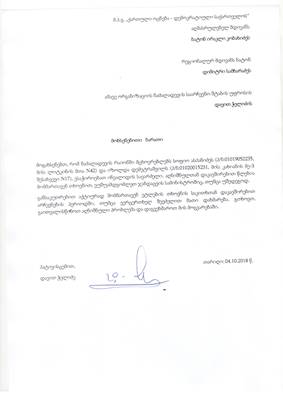 გიგზავნით წრილს.ქთხოვთ განიხილოთ თქვნი კომპენტეციის ფარგლებში