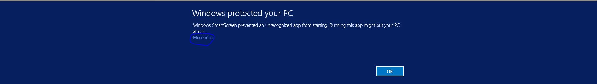 3. გამოვა ლურჯი გამოსახელება ეკრანზე , სადაც ვაჭერთ More Info , და შემდეგ Run Anyway.