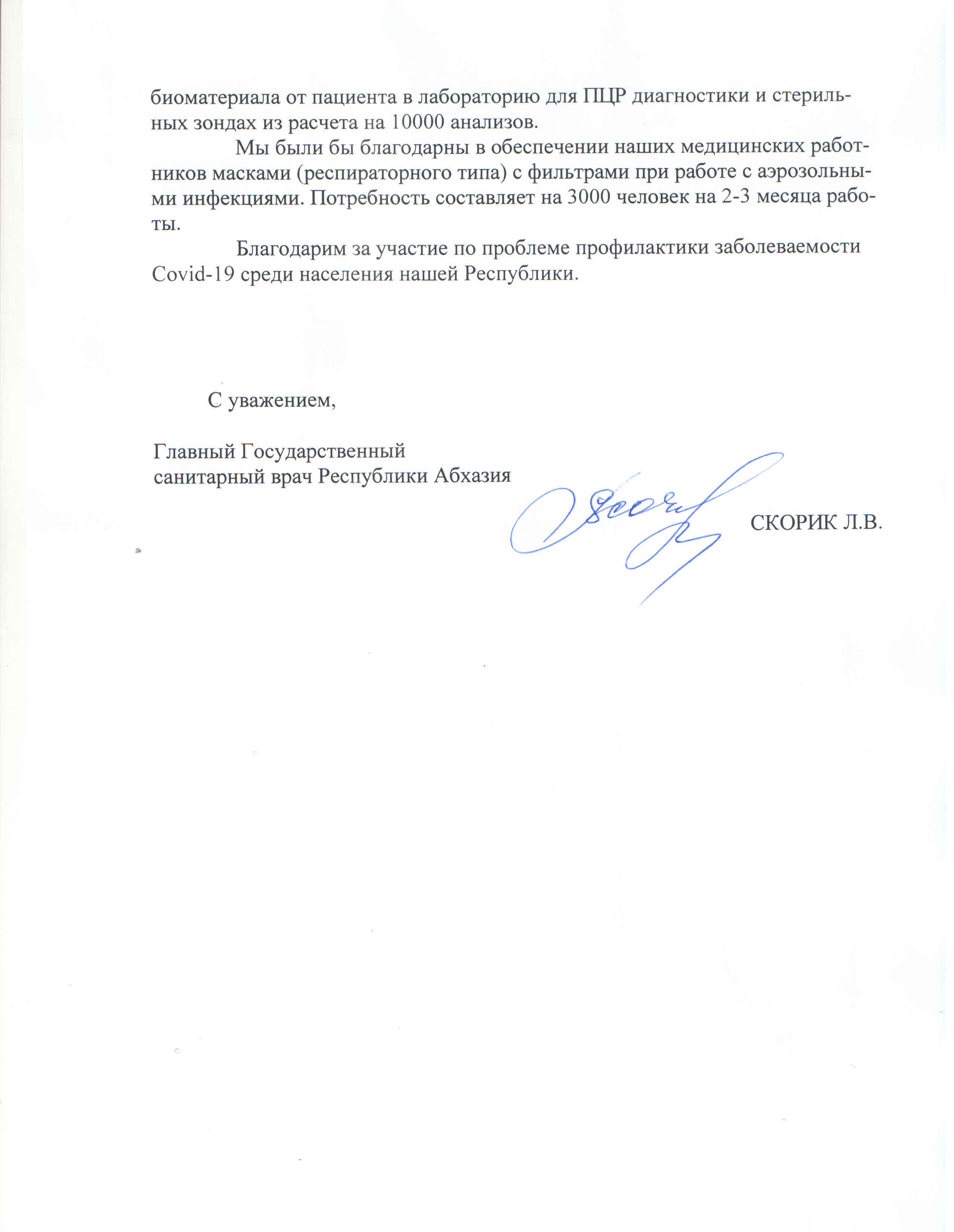 I received yesterday a request for support related to COVID-19 from Abkhazia.