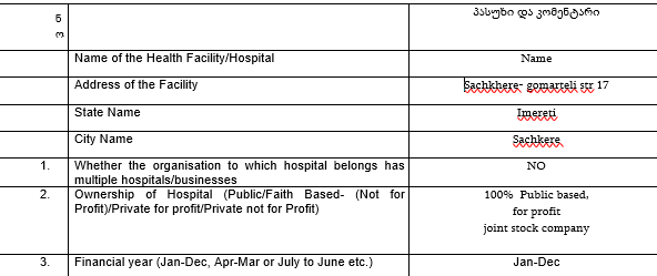 თუ ამ სავადმყოფოს განფასება დასრულებული არ არის შეგიძლიათ გამომიგზავნოთ ნედლი დოკუმენტაცია და ერთად დავასრულოთ განფასება, რის მიხედვითაც შემდეგ განფასები სოფიცრები სეძლებენ იხელმძღვანელონ,