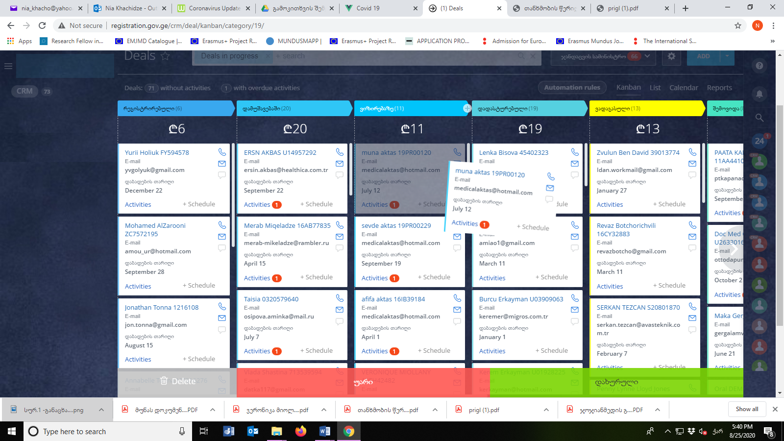 ამჟამად ვიზირების გრაფაში მოთავსებულია 11 განაცხადი, რომლებიც პირველადი განხილვის შემდეგ ელოდება დადასტურებას. დადასტურების მიზნით თითოეული განაცხადს კურსორით მონიშვნის შემდეგ გადასვავთ გვერდით მდგომ, დადასტურების გრაფაში (იხ. სურ 1). ეს ნიშნავს, რომ განმცხადებელს