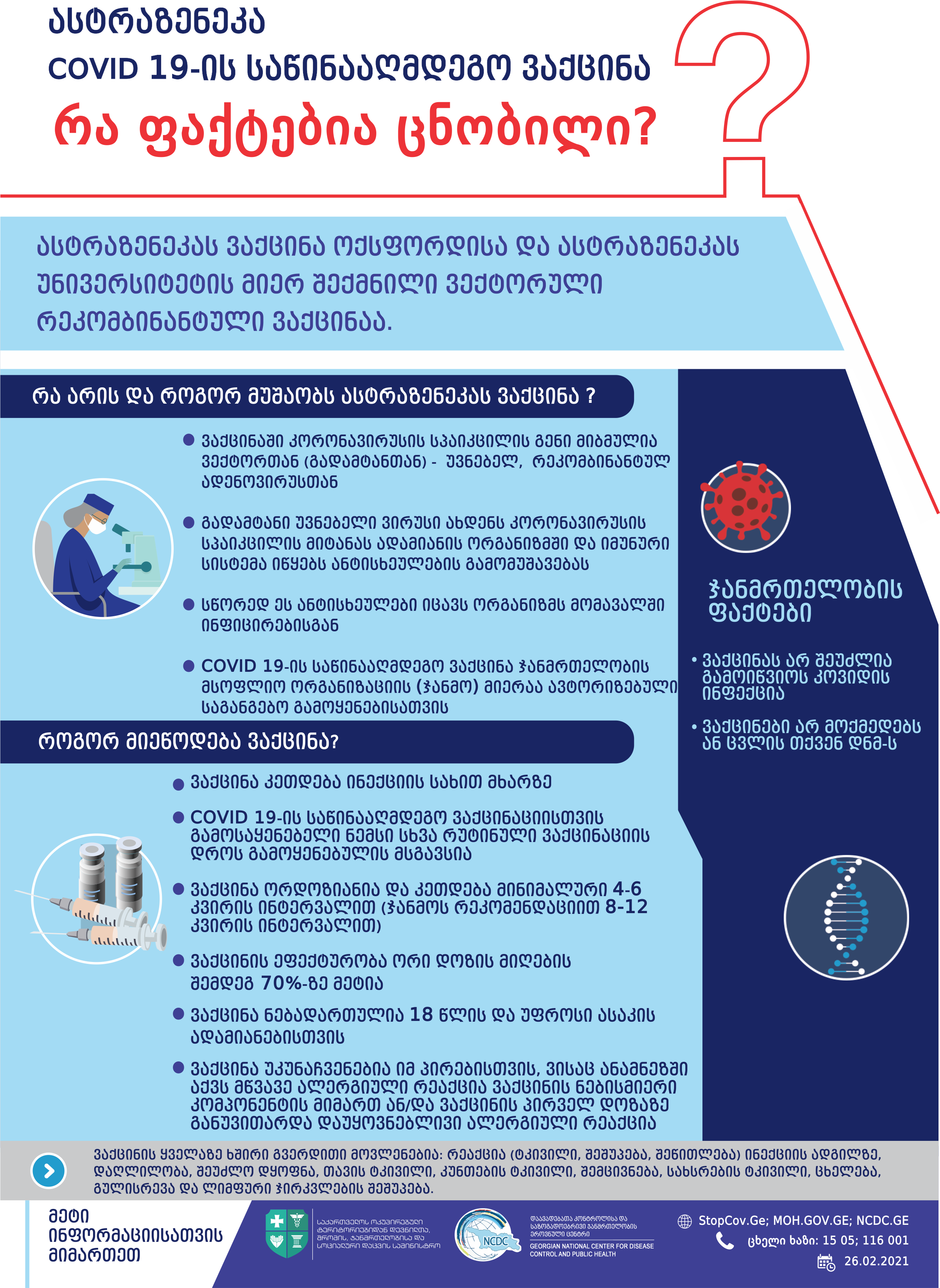 დამატებითი ინფორმაცია და მასალები იხ. ცენტრის ვებგვერდზე (ყველაფერი კოვიდ ვაქცინის შესახებ - https://www.ncdc.ge/#/home