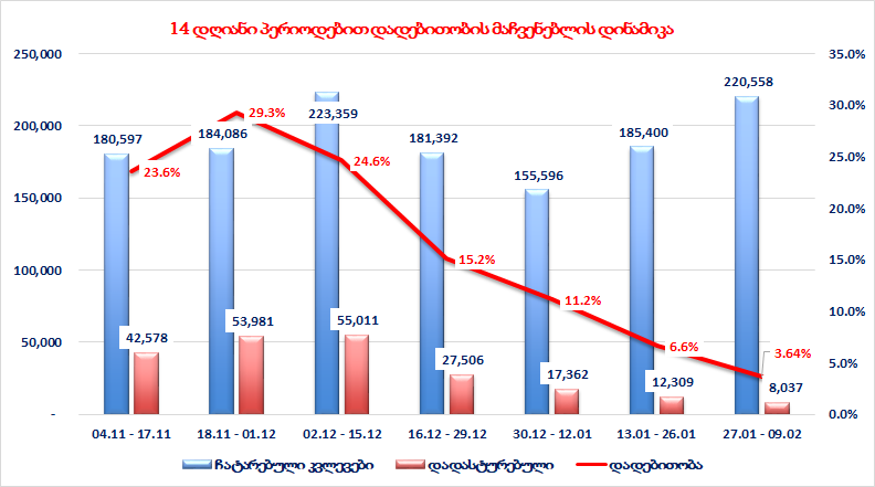 30 დეკემბერი-12 იანვრის განმავლობაში საშუალოდ დღეში აღებული იქნა 11.257 საკვლევი ნიმუში,