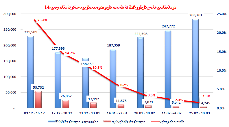 - 10 მარტი 20.264 ნიმუში. (საშუალოდ დღეში ბოლო ერთი თვის მანძილზე 19.054