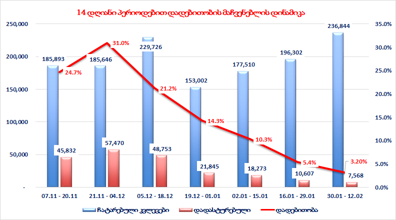 - 12 თებერვალი 16.820 ნიმუში. (საშუალოდ დღეში ბოლო ერთი თვის მანძილზე 15.514