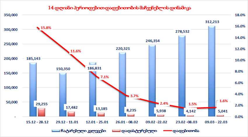 დღიურად ჩატარებული ტესტების რაოდენობა : PCR – 6607 და ანტიგენი - 14296 სულ -