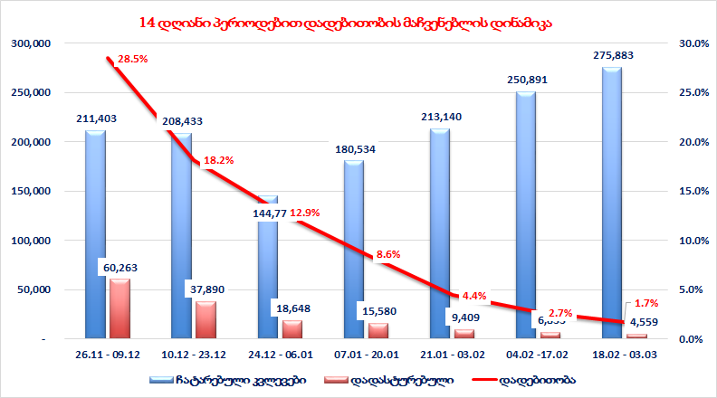 - 3 მარტი 19.706 ნიმუში. (საშუალოდ დღეში ბოლო ერთი თვის მანძილზე 18.639
