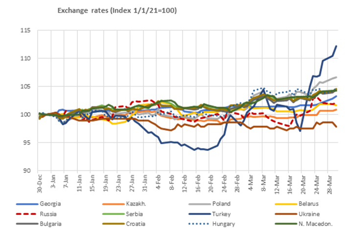 Real activity: PMI remained in growth territory and slightly strengthened in both Turkey and Poland in March.