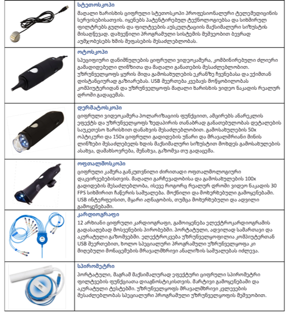 ·       სახარჯი მასალები რაც სჭირდება სპირომეტრს, ოტოსკოპს, კარდიოგრაფს.. ეს მასალები მოხმარებული რაოდენობის შესაბამისად იქნება საყიდელი / შესავსები.