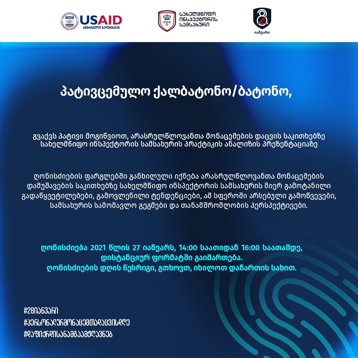 | Subject : | 27 იანვრის ღონისძიების დღის წესრიგი და მოსაწვევი |