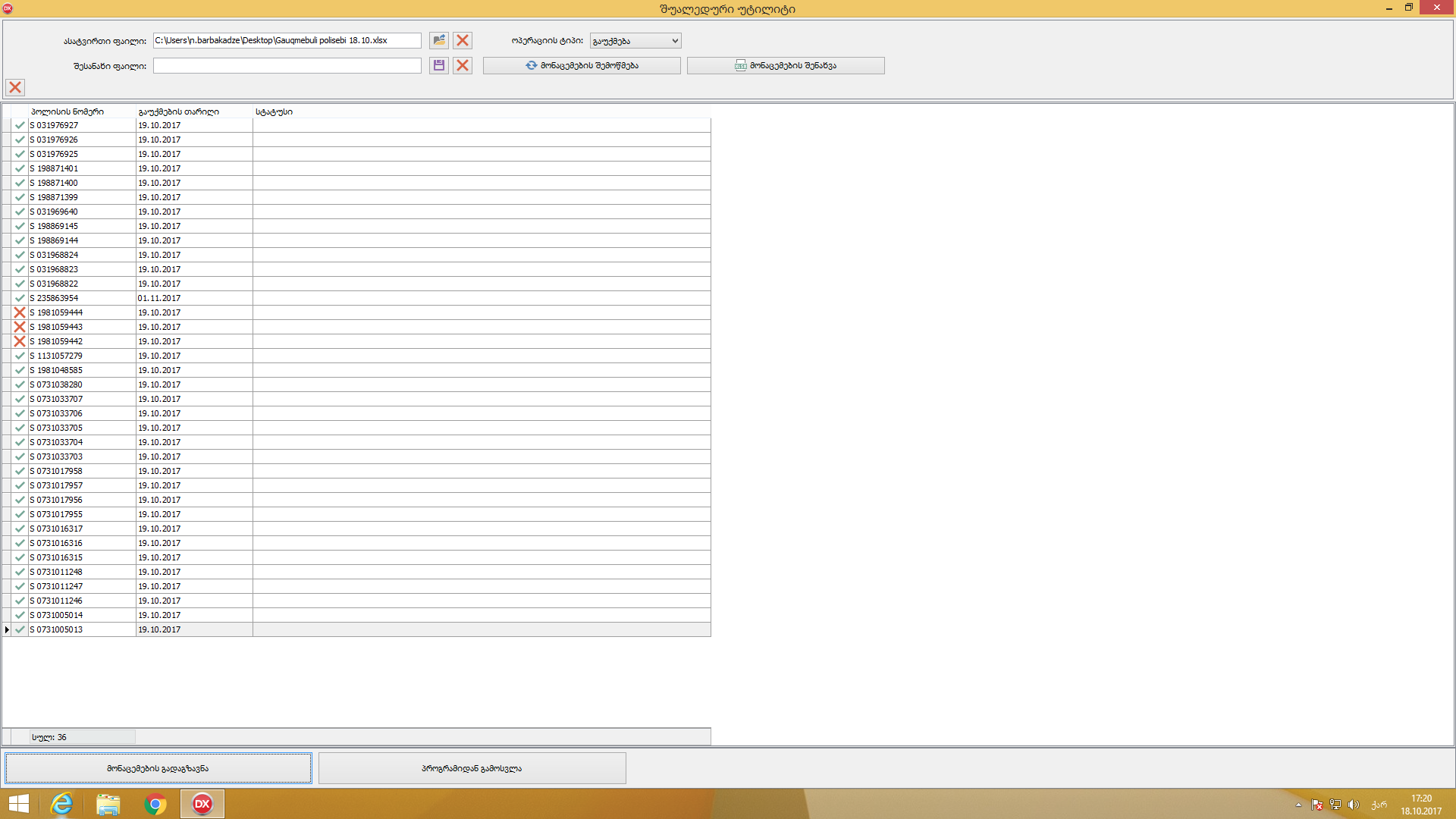 დღეს გაუქმებული 36 პოლისიდან პროგრამამ 3 პოლისზე დასვა წითელი იქსი, თუმცა პორტალზე რომ გადავამოწმე ყველა პოლისი გაუქმებულია