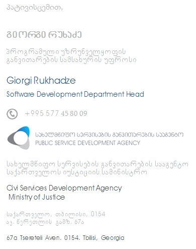 | From : | Giorgi Rukhadze <g.rukhadze@sda.gov.ge> |