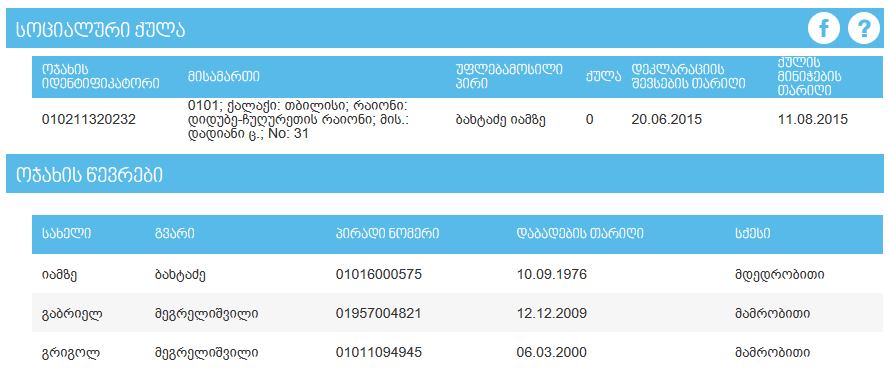 my.gov.ge-თვის გავაკეთეთ მეთოდი, რომელიც აბრუნებს ოჯახის წევრის პირადობით ოჯახზე სრულ ინფომრაციას (ამონაწერის ინფორმაციას)