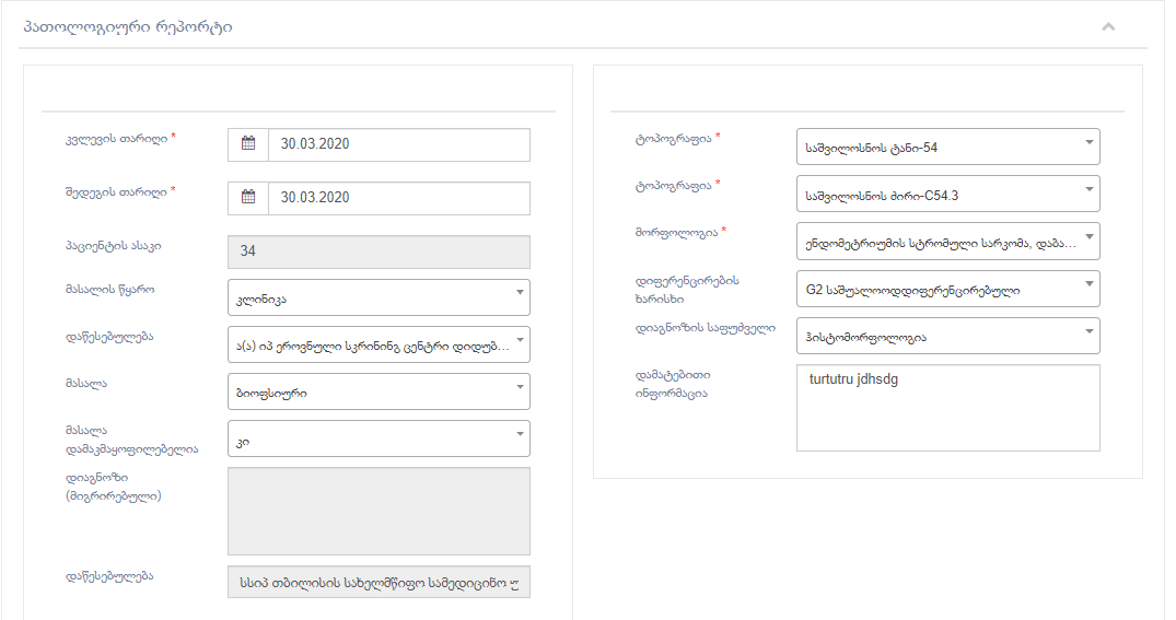 Subject : Re: FW: მორფოლოგიის დიაგნოზების დამატება
